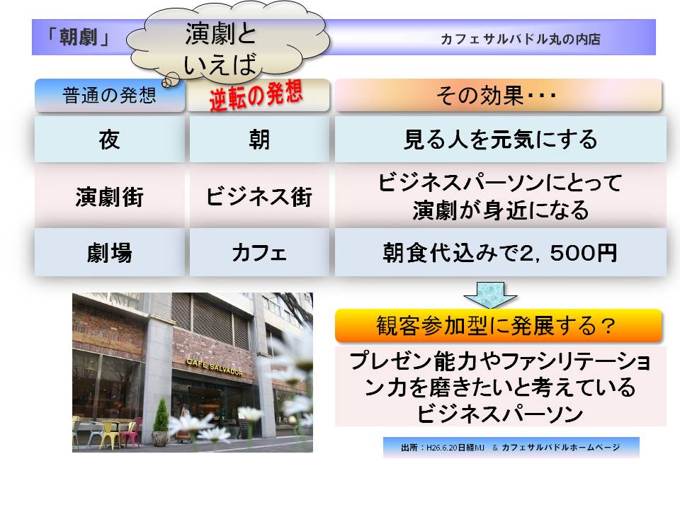 少し前(H26年6月20日)の日経MJの記事(中本千晶さんのレビューれびゅー)ですが、カフェサルバドル丸の内店さんの取組をご紹介しましょう・・・。