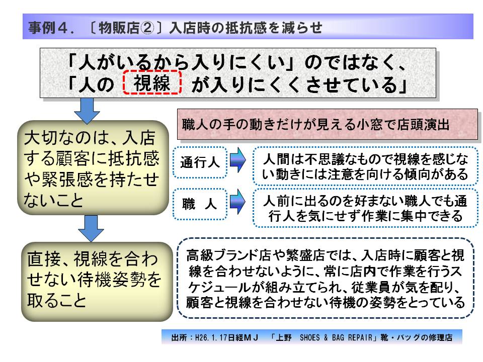 少し前(H26年1月7日)の日経MJの記事(榎本博之さんの「アゲる!店づくり」)です。